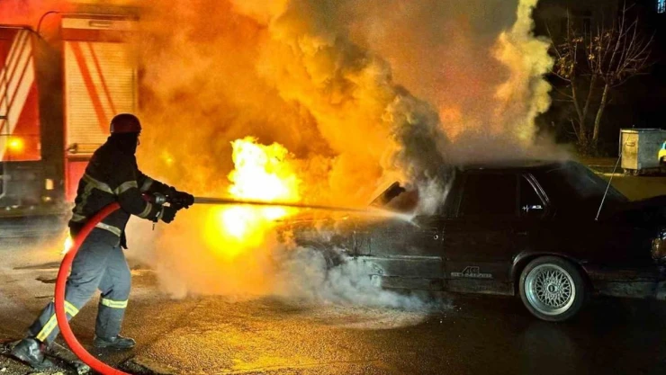 Yangın sebebiyle otomobil hasar alırken, şans eseri yaralanan olmadı.
