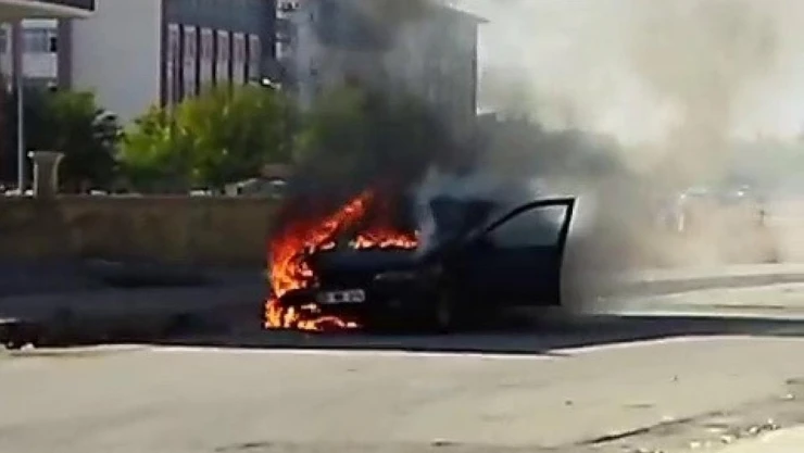 Adıyaman'da seyir halindeki bir otomobil alev alarak cayır cayır yandı.