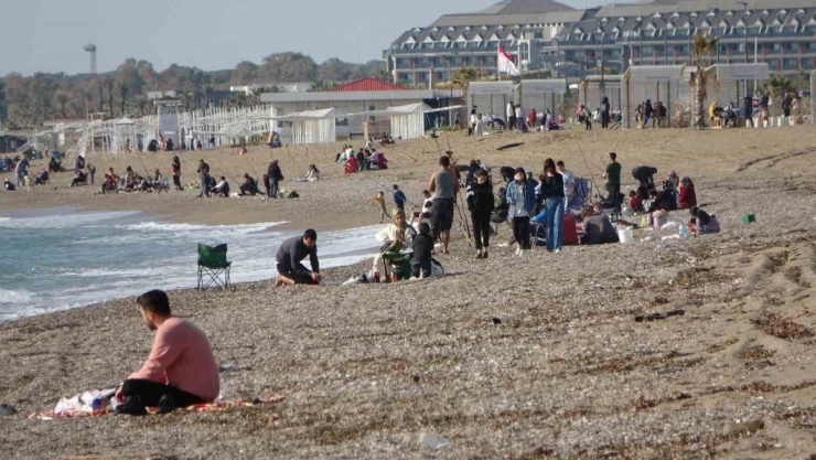 Antalya'nın Manavgat ilçesinde soğuk ve yağmurlu havanın ardından güneşin etkisini göstermesi, vatandaşların sahillere akın etmesine neden oldu. Vatandaşlardan bazıları balık tutarken, bazıları güneşlenmeyi, yürüyüş yapmayı tercih etti.