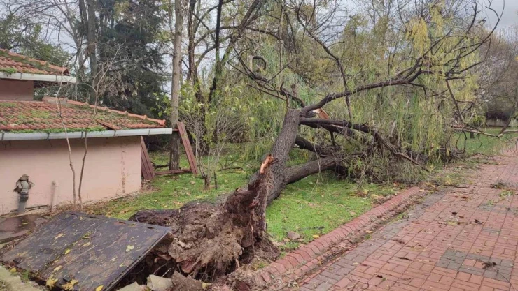 Edirne’nin Keşan ilçesinde şiddetli rüzgar nedeniyle ağaçlar kırılırken, Mehmet Gemici Cennet Bahçesi geçici süre kullanıma kapatıldı.