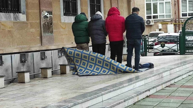 Eskişehir’de bugün saatlerinde kısa süreli etkili olan yağmur, Cuma namazını camide yer bulamadıkları için dışarıda kılmak zorunda kalan vatandaşları hazırlıksız yakaladı. Cuma namazı esnasında yağmur altında kalan camii cemaati, baştan aşağı ıslanmak pahasına namazlarını kıldılar ve bu esnada saflarını terk etmediler.