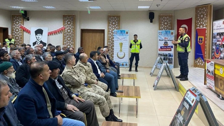 Siirt'in Şirvan ilçesinde çapa makinesi/patpat tarım aletlerinin yanlış amaçlarla kullanılmasını önlemek için vatandaşlara bilgilendirme eğitimi verildi.