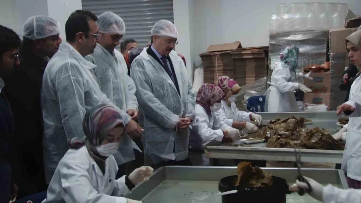 Siirt Valisi Dr. Kemal Kızılkaya, GAP Başkanı Dr. Hasan Maral ile birlikte Şirvan’ın Pirinçlik köyü Üreten Eller Kadın Kooperatifi Tayfi Üzüm Yaprağı Salamura Tesisini ziyaret etti.