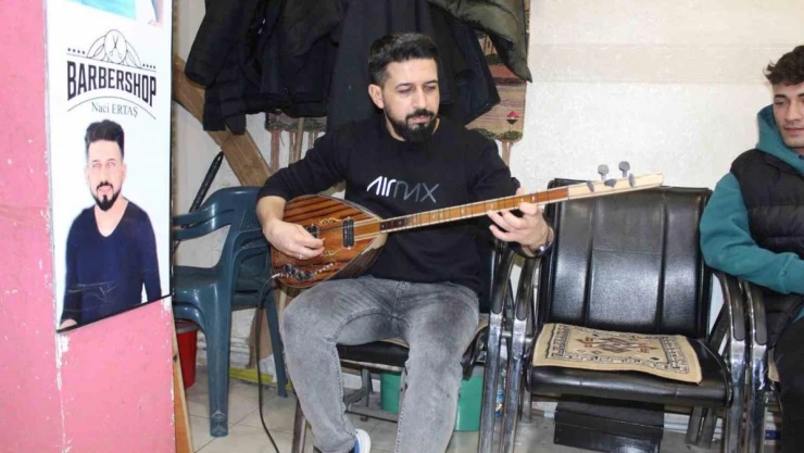 Siirt’te bir berber iş yerine gelen vatandaşları hem tıraş ediyor, hem de sazıyla gönüllerine dokunuyor.