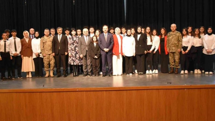 Program ilk ve orta öğretim kurumları arasında düzenlenen Şiir, Resim ve Kompozisyon yarışmalarında dereceye giren öğrencilere ödülleri Vali Kemal Kızılkaya ve diğer protokol üyeleri tarafından verildi.