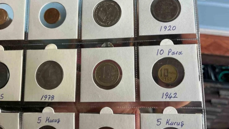 Eskişehir’in Sivrihisar içesinde para koleksiyonu yapan Oğuz Ekici’nin elinde, Âşık Veysel Şatıroğlu’nun seslendirdiği “Güzelliğin On Para Etmez” türküsünde geçen 10 para yer alıyor.