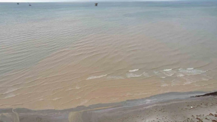 Taşkın sonrasında sular denize doğru akmaya başladı. Semizkumlar Sahili’ne akan sular nedeniyle denizin rengi de değişti. Kıyı kesimi komple kahverengiye dönen deniz, dron ile havadan görüntülendi.