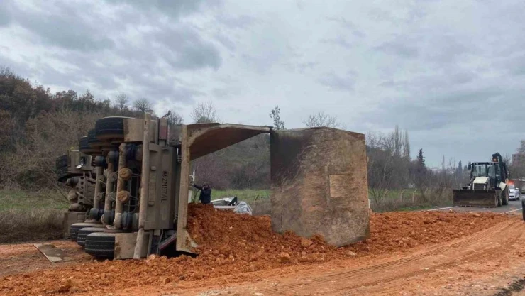 Sındırgı'da maden yüklü kamyon yan yattı: 1 yaralı