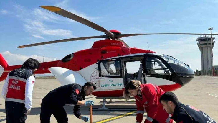 A.K., ileri tetkik ve tedavi için ambulans helikopterle Van Eğitim ve Araştırma Hastanesi’ne nakledildi.