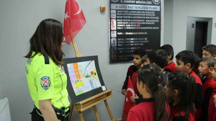 Trafik haftası kutlamaları çerçevesinde ilkokul öğrencileri Şırnak İl Emniyet Müdürlüğü Trafik Şube Müdürlüğünü ziyaret etti.