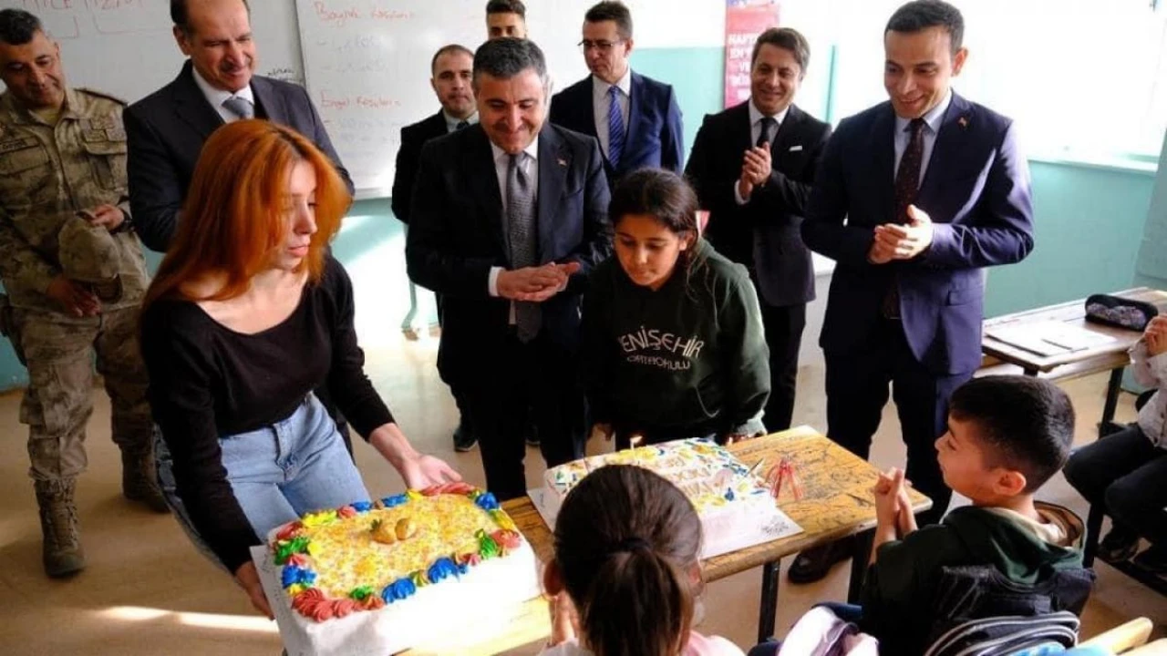 Şırnak Valisi Cevdet Atay, Silopi Kaymakamı Cihat Koç, İl Milli Eğitim Müdürü İzzet Aydın, İlçe Milli Eğitim Müdürü Murat Bilen ve beraberindekiler Berfin Armağan’ı Yenişehir Ortaokulundaki sınıfında ziyaret ederek sürpriz doğum gününü kutladı.