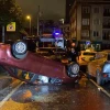 Şişli'de sürücü dehşeti: Patlak lastiğe aldırış etmeden yola devam etti, refüje çıkarak takla attı