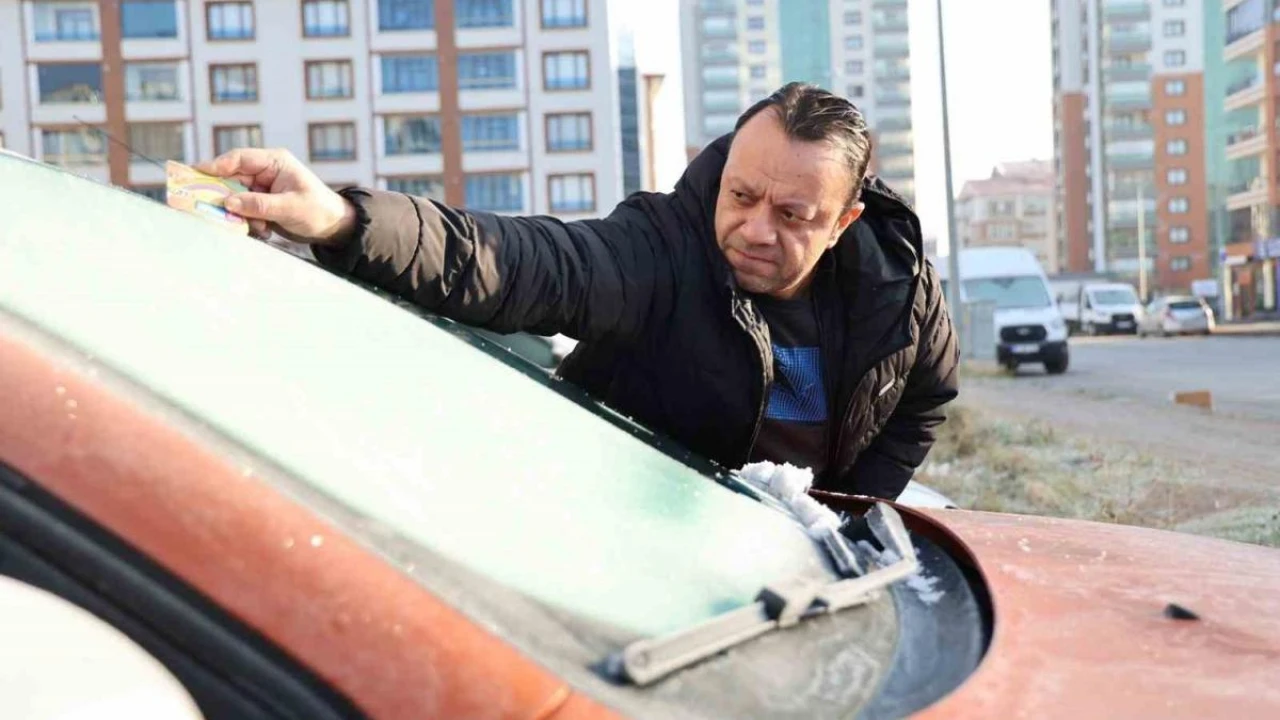 Sivas’ta hava sıcaklığının sıfırın altında 6 dereceye düşmesiyle birlikte araçların camları buz tuttu. Vatandaşlar günün erken saatlerinde cam kazıdı.