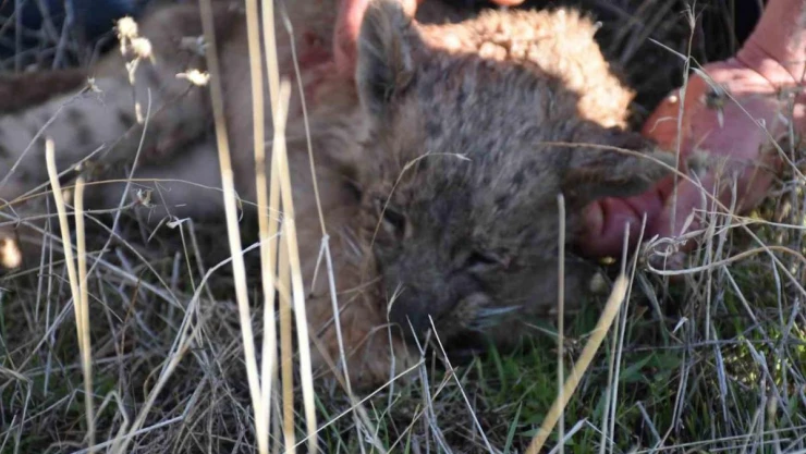 Şanlıurfa'nın Siverek ilçesinde yol kenarına bırakılan bir aslan yavrusu, ihbar üzerine 2 gündür yapılan aramalar sonucu bitkin halde bulundu.