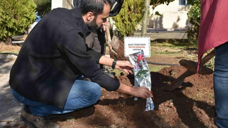 Öğretmeler günü anısına, okul bahçesinde şehit olan öğretmenler anısına ağaç dikilerek, ağaçlara isimleri takıldı. Şehit öğretmenlerin isimlerinin yanına gül bırakan öğretmen ve öğrenciler, gelecek nesilleri yetiştirmek uğruna şehit olan öğretmenleri andı.