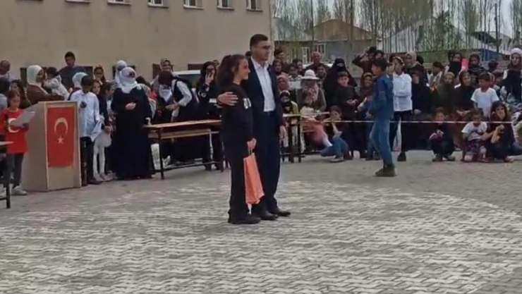 Patnos Selahaddin Eyyubi Ortaokulu bahçesinde gerçekleştirilen programda öğrencilerin yanı sıra çok sayıda öğrenci velisi de katıldı.