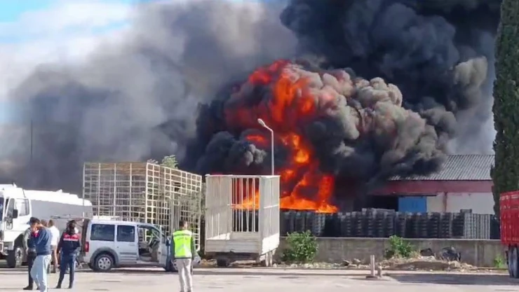 Soğuk hava deposunun plastik kasa bölümü alev alev yandı