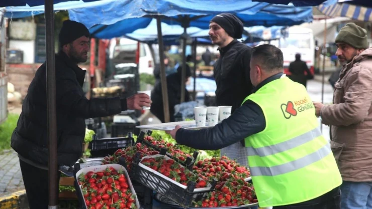 Kocaeli Büyükşehir Belediyesi, Gölcük Kavaklı Çarşamba Pazarı'nda tezgah açan esnafa soğuk kış gününde çorba ikramında bulundu.