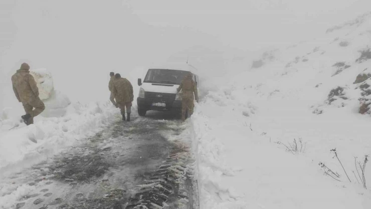 Batman'ın Sason ilçesinde Sultan Dağı'nda yoğun kar nedeniyle kara saplanan köylülere ait minibüs, Köylere Hizmet Götürme Birliği ve jandarma ekipleri tarafından kurtarıldı.
