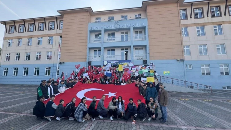 Sultanbeyli Erol Yüksel Ortaokulu öğrencileri Filistin'deki İsrail terörüne tepki göstermek ve Gazze halkı için farkındalık oluşturmak için yürüyüş düzenledi. Öğrenciler hep bir ağızdan, 'Erol Yüksel'den Gazze'ye bir selam' mesajı verdi.