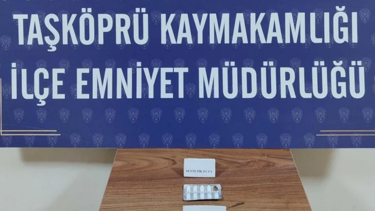 Edinilen bilgiye göre, Taşköprü İlçe Emniyet Müdürlüğü ekipleri tarafından yapılan denetim sırasında, durumundan şüphelinilen bir şahsın bulunduğu araç durduruldu. Araçta yapılan aramalarda uyuşturucu madde emdirilmiş 10 parça kağıt mendil, 9 adet sentetik ecza hapı ele geçirildi.
