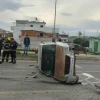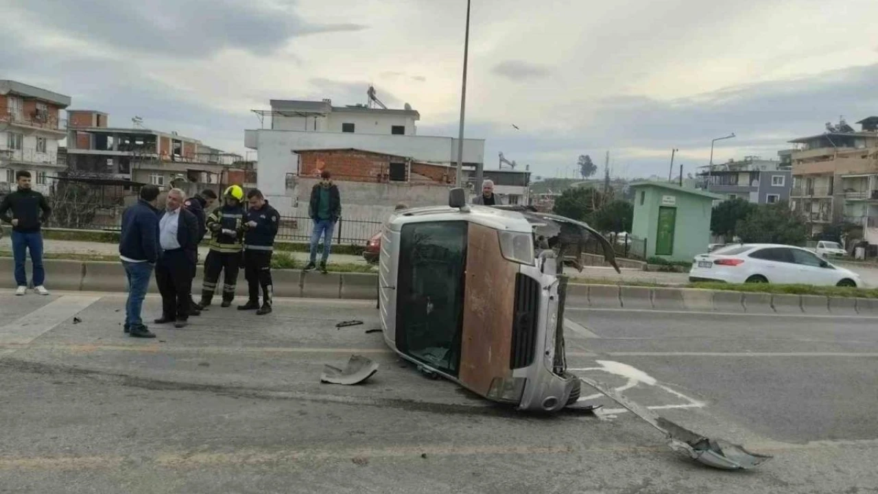 Aydın'ın Efeler ilçesinde sürücüsünün direksiyon hakimiyetini kaybetmesi sonucu refüje çarpan ticari araç yan yattı.