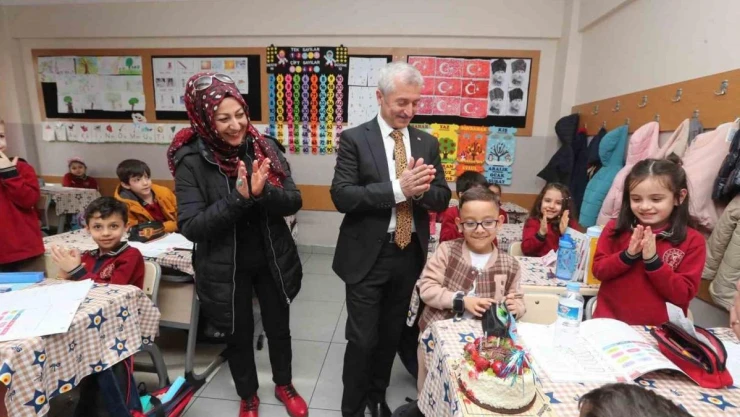 Şahinbey Belediye Başkanı Mehmet Tahmazoğlu minik Tuğtekin Aras Ararat'ı okulunda ziyaret ederek, doğum gününü kutladı.