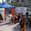 Muş İl Afet ve Acil Durum Müdürlüğü (AFAD) ekipleri ve gönüllüleri 1-7 Mart Deprem Haftası etkinlikleri kapsamında Tarihi Murat Köprüsü'nde deprem farkındalık standı kurdu.