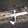 Tarlaya inen uçağın enkazı, dron ile görüntülendi
