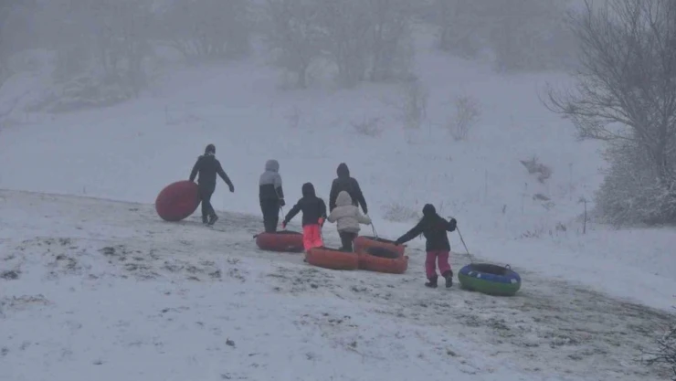 Bolu’da kar kalınlığının 15 santimetreyi bulduğu Abant Gölü Milli Parkı’na gelen tatilciler, soğuk havaya rağmen doyasıya eğlendi.