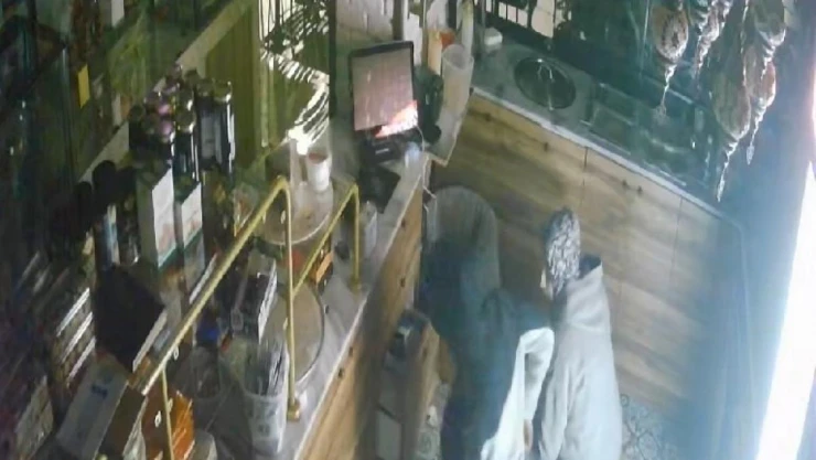 Öte yandan, hırsızlık anı saniye saniye güvenlik kamerası tarafından kaydedildi. Görüntülerde camdan dükkana giren 2 şahsın kasaya yöneldiği, ardından çekmecelerdeki paraları ceplerine doldurduğu görülüyor. Şahıslardan biri tezgah üzerindeki bağış kumbarasını da çalıyor.