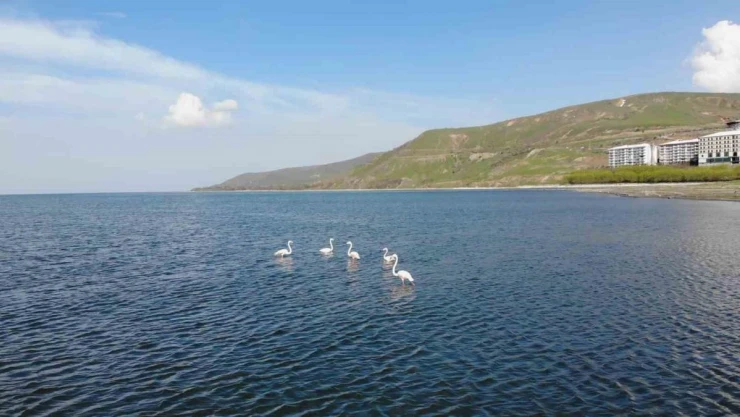 Van Gölü, her yıl İran’ın Urmiye Gölü’nden gelerek yaklaşık 5 ay boyunca konaklayan binlerce flamingoya ev sahipliği yapıyor. Bu yıl da havaların geç ısınmasından kaynaklı Bitlis’in Tatvan ilçesinin Van Gölü kıyılarına gelen 5 flamingo, fotoğrafçılar tarafından yoğun ilgi görüyor. İlçenin sazlık alanlarına sığınan flamingolar heyecan oluşturdu. Göç güzergâhı üzerinde olan ilçede dinlenen flamingolar, fotoğraf çekimi için bölgeye akın eden vatandaşların da ilgi odağı oldu.