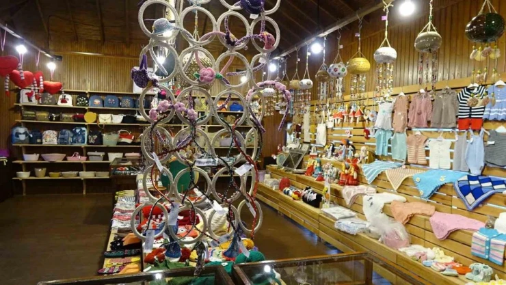 Kütahya’nın Tavşanlı ilçesinde Girişimci İş Kadınları Derneği’nin 2022 yılında açmış olduğu el emeği göz nuru ürünlerinin satışının yapıldığı reyonlar ilgi bekliyor.