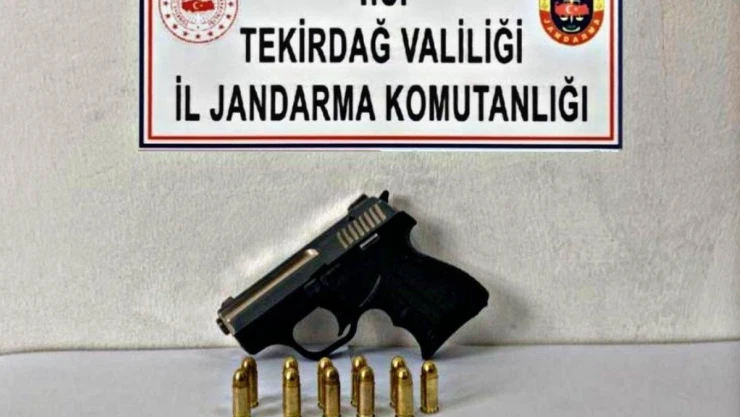 Tekirdağ İl Jandarma Komutanlığınca Çerkezköy Namık Kemal Mahallesinde M.T. isimli şahsın yapılan üst aramasında, 1 adet kuru sıkıdan çevrilme tabanca, 1 adet şarjör ve 11 adet 7,65 mm fişek ele geçirildi.