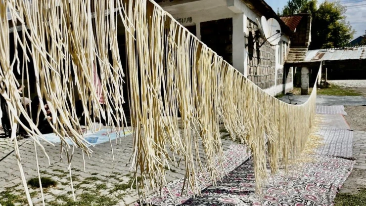 Tel tel iplere dizilen erişteler kış sofraları için hazırlanıyor