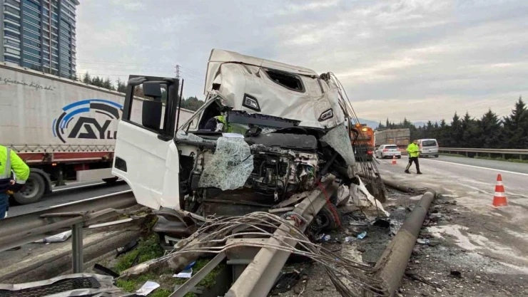 TEM Otoyolu’nun Kocaeli geçişinde kontrolden çıkan tır, orta refüje girerek bariyerlere çarptı, 2 aydınlatma direğini devirdi. Tırın kullanılamaz hale geldiği kazada 2 kişi hafif şekilde yaralandı.