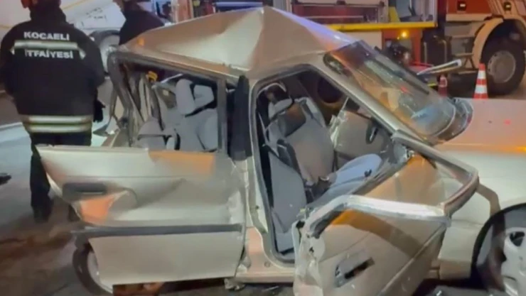 TEM otoyolu Kocaeli geçişinde tırla çarpışan otomobil adeta kağıt gibi ezildi. Kazada 2 kişi ağır yaralandı.