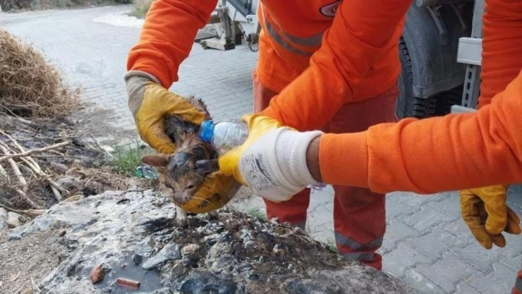 Muğla’nın Milas ilçesinde canlı olarak poşete sarılıp çöpe atılmış kedi yavrusu belediye temizlik işçilerinin dikkati sayesinde kurtarıldı.