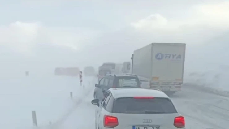 Van'ın Çaldıran ilçesindeki Tendürek Geçidi, yoğun kar ve tipi nedeniyle ağır tonajlı araçlara kapatıldı.