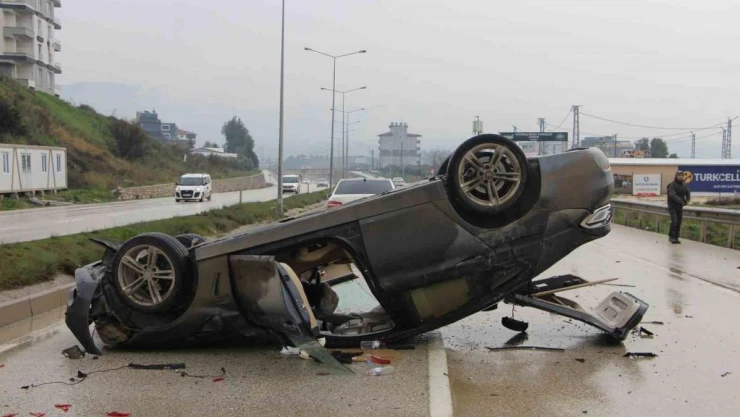Hatay’da takla atarak ters dönen otomobilin sürücüsü yaralandı.