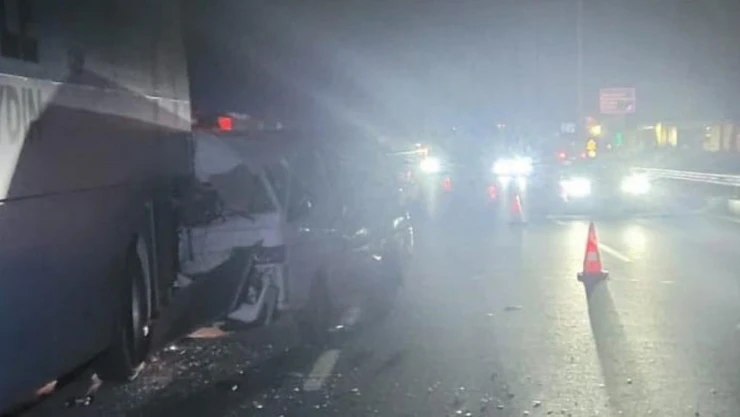 Aydın'ın Efeler ilçesinde meydana gelen trafik kazasında karayolu üzerinde emniyet şeridinde park halinde bulunan bir seçim otobüsüne arkadan çarpan ticari araç otobüse ok gibi saplanırken, kazada 1 kişi hayatını kaybetti.