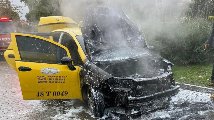 Muğla'nın Menteşe ilçesinde seyir halindeki bir ticari takside çıkan yangın sonucu araç kullanılamaz hale geldi.