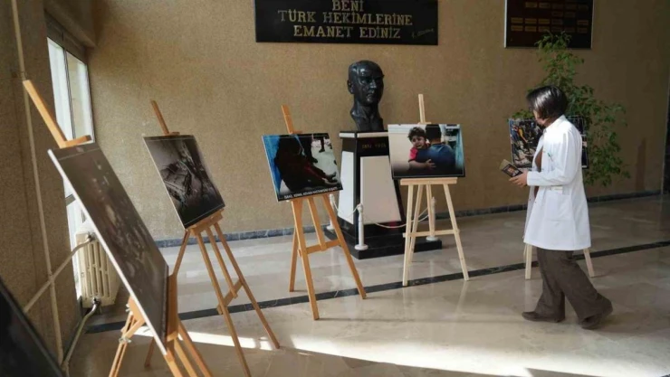 Serginin açılışında tıp öğrencileri adına konuşan Stajyer Dr. Dilara Durak, “7 Ekim’den bu yana can sıkıcı, alışık olmadığımız olaylar yaşanmakta. Sergideki amacımız ortak derdimizden bahsetmektir. Derdimiz, ‘katliam’ ve insan hayatının hiçe sayılmasıdır. Hekimler ve sağlık çalışanları olarak bu olaylara sessiz kalmayacağız. Bizler, hayatlarını insan hayatının kutsiyeti ve dokunulmazlığına adamış kişiler olarak, işgal güçlerinin Gazze’de göstermiş olduğu savaş suçu niteliğindeki eylem ve kararları kabul etmeyeceğiz. Hastanelerin bombalanması, sağlık çalışanlarının alıkoyulup öldürülmesi, büyük bir kısmının çocuk, kadın ve bakıma muhtaç hastaların oluşturduğu sivillerin hedef alınması hiçbir ideoloji ve amacın gerekli bir sonucu olamaz” dedi.
