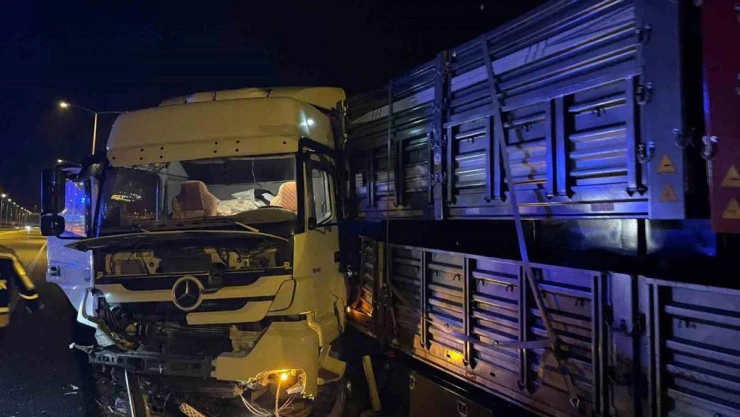 Konya'nın Kulu ilçesi yakınlarında tırın bariyerlere çapması sonucu meydana gelen kazada tır sürücüsü yaralandı.