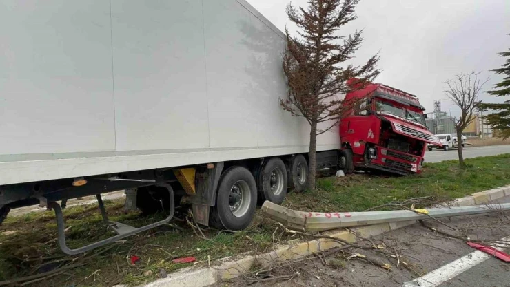 Tırın kontrolden çıktığı kazada faciadan dönüldü.