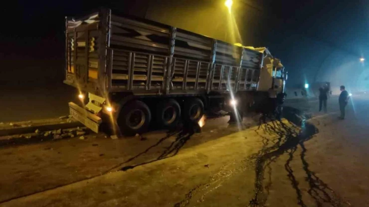 Bitlis'teki 8 Ağustos Tüneli'nde tırla traktörün çarpışması sonucu maddi hasar meydana geldi.