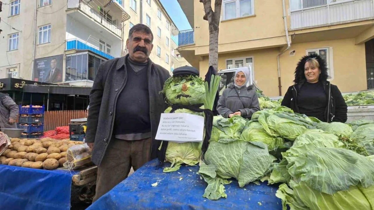 Tokat Gönüllü Turizm ve İklim Elçisi Fatma Esin Tuna, beraberindeki arkadaşlarıyla birlikte, küresel iklim krizine ve bu yıl Tokat'a düşmeyen kar yağışına dikkat çekmek amacıyla özel bir etkinlik düzenledi. Kentin meşhur pazarına giden gönüllüler, vatandaşlara sürpriz yaparak kardan adam yerine lahana adam oluşturdu.