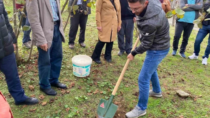DÜZCE(İHA) –Gölyaka ilçe Tarım ve Orman Müdürlüğü ekipleri fındık üretimi yapan çiftçilere toprak tahlili için toprak numunesinin nasıl alınacağını uygulamalı olarak gösterildi.