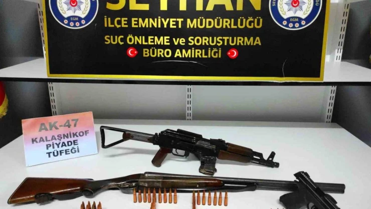 Araştırma polisleri, söz konusu S.Y.’nin Sarıçam ilçesindeki Yıldırım Beyazıt Mahallesi’nde bulunan adresine baskın düzenlendi. Ekipler baskında S.Y.’yi yakalarken, evde yapılan aramada uzun namlulu silah, ruhsatsız tabanca, ruhsatsız tüfek, 2 uzun namlulu silah şarjörü, 1 tabanca şarjörü, 48 uzun namlulu silah mermisi, 5 tabanca mermisi ve 20 tüfek kartuşu ele geçirdi.