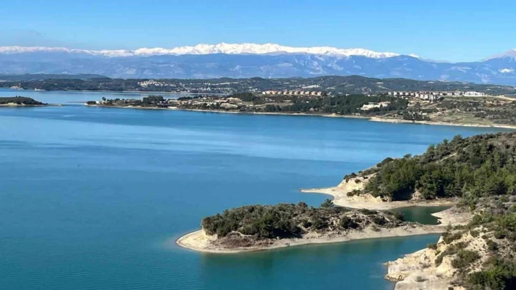 Toroslar’ın zirvesinin karla kaplanması ve Seyhan Baraj Gölü aynı kadraja girince kartpostallık manzaralar oluştu.